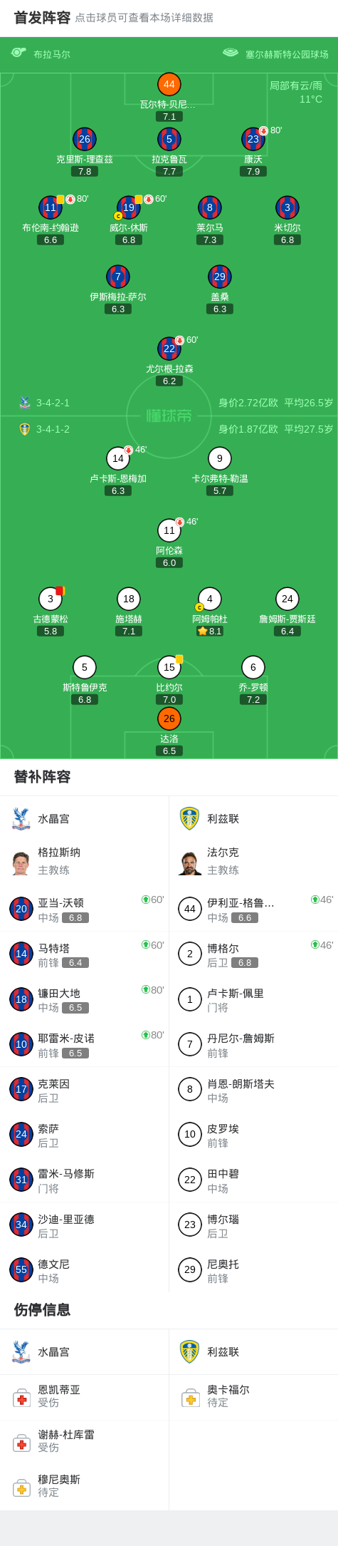 kaiyun体育网-水晶宫0-0十人利兹联,勒温失点,古德蒙松染红